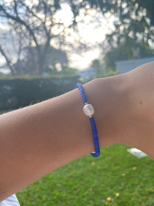 Deep Blue Elastic Pearl Bracelt