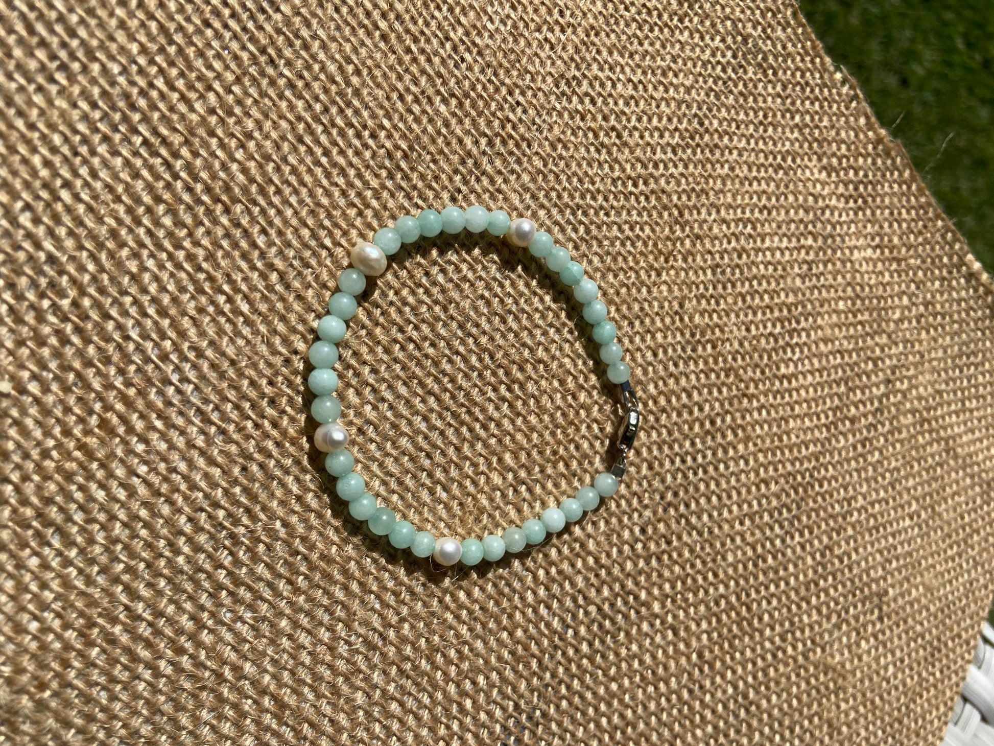 Delicate and pretty. Aquamarine beads with 4mm freshwater pearls and sterling silver clasp.