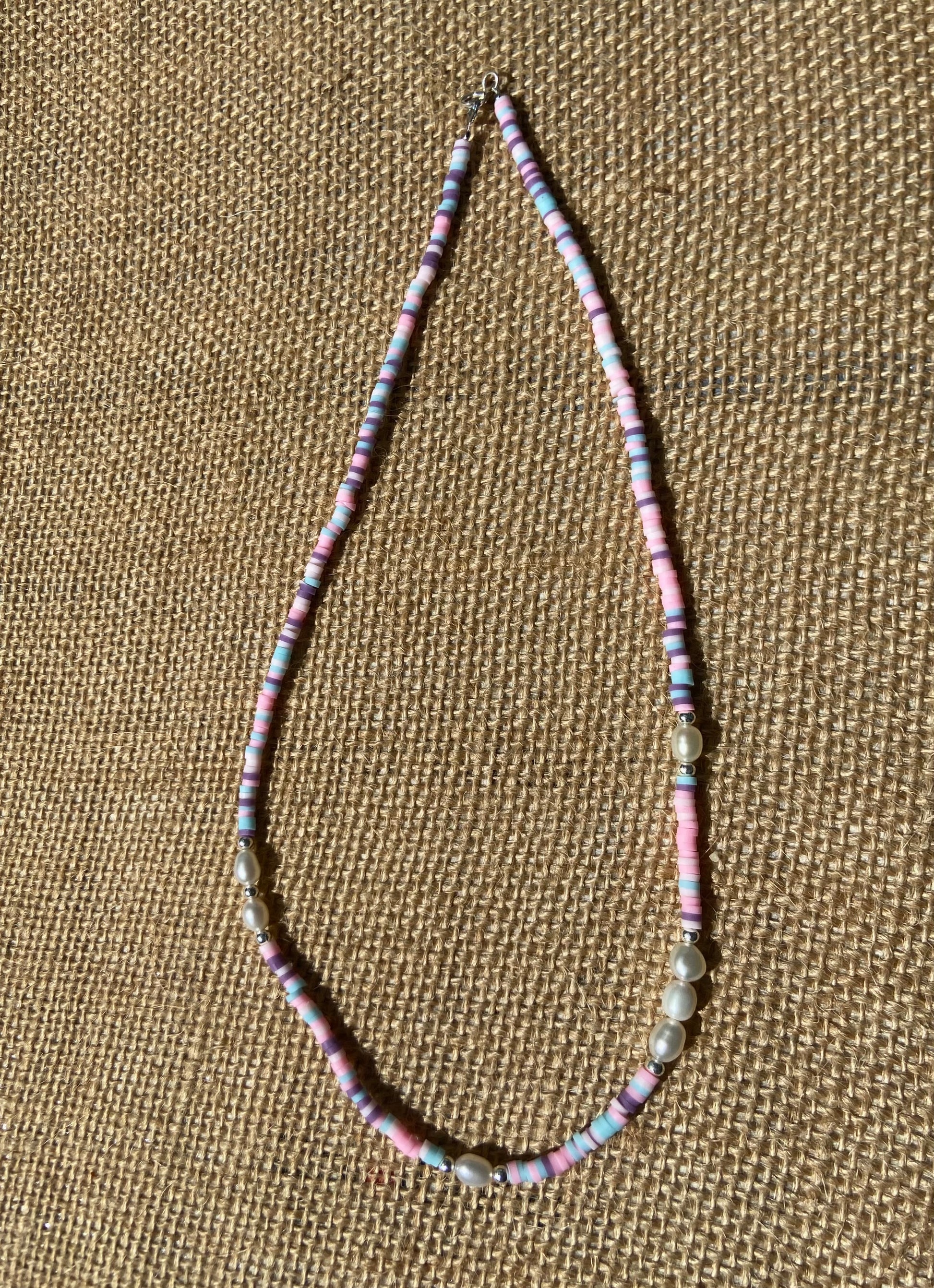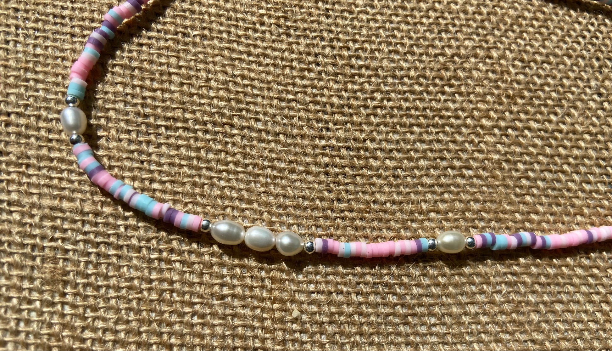 Pastel 3mm polymer clay beads mix with sterling silver and freshwater pearls.